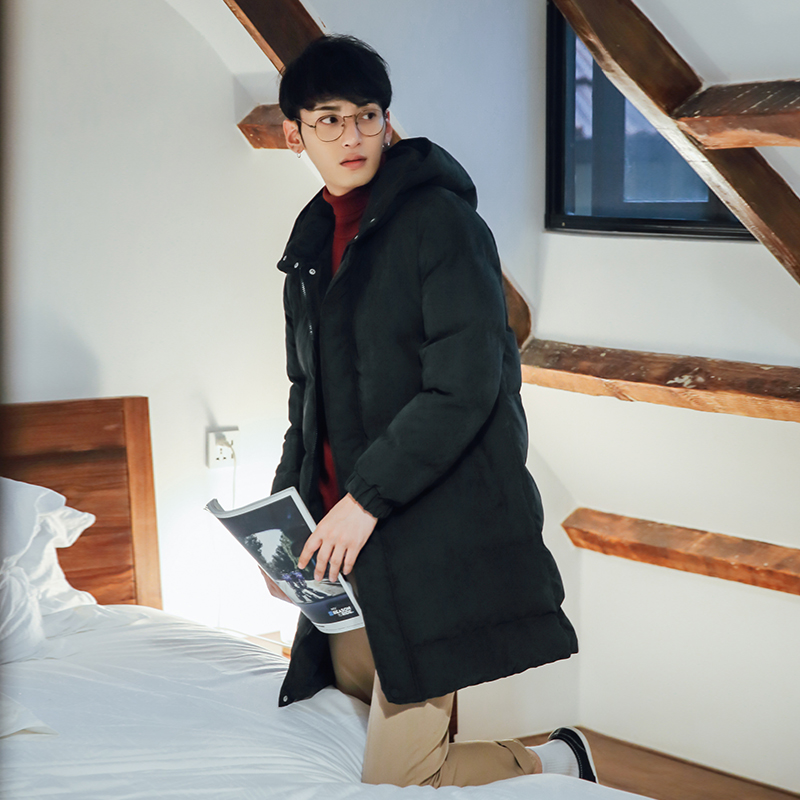 男裝純色簡約中長款潮男連帽棉衣韓版港風冬面包服