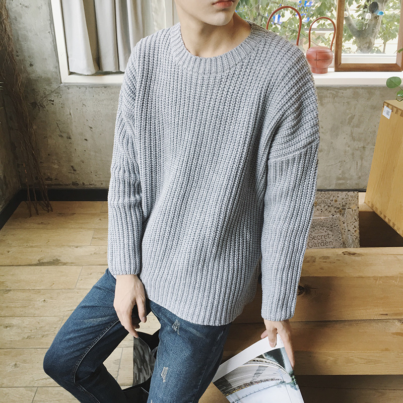 / 男裝新款韓版落肩圓領男士粗線毛衣寬松套頭針織衫