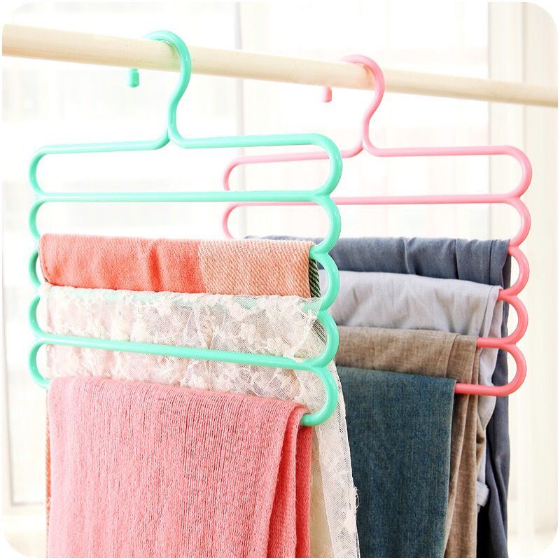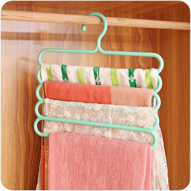 / 多用衣架 塑料彩色防滑多層掛褲子衣服衣柜5層衣架 圍巾絲巾掛架