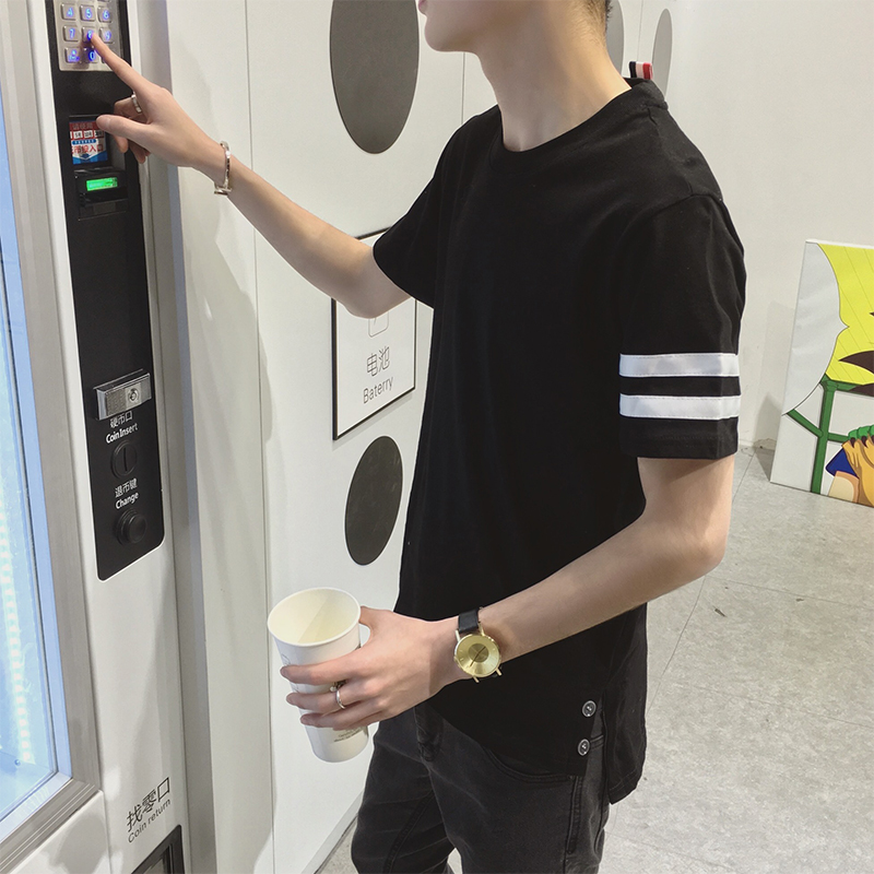 夏裝新款拼色修身圓領半袖港風夏季男士短袖T恤