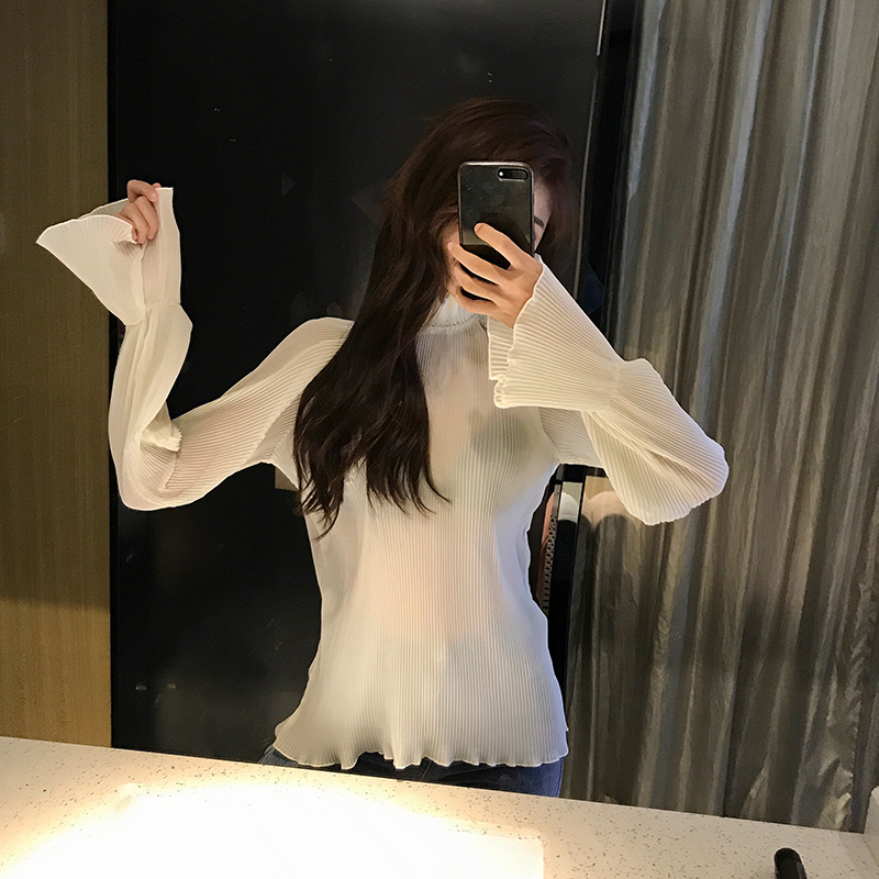 時尚套裝新款寬松中長款馬甲chic兩件套女喇叭袖打底針織衫上衣潮