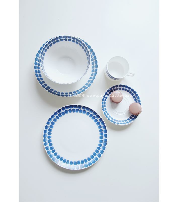 / 北歐風 芬蘭藍點餐盤8寸盤子 日式陶瓷餐具杯碟碗 西餐盤牛排盤子