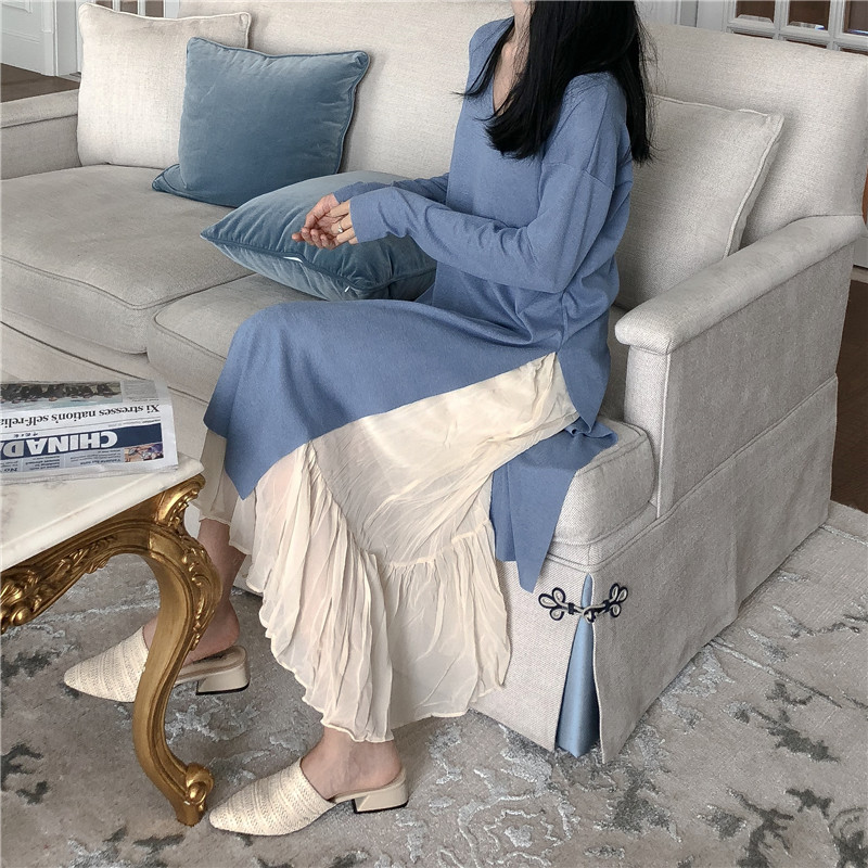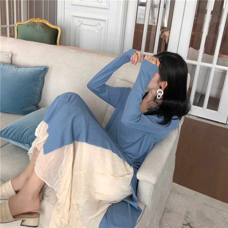 / 雪紡吊帶長款連衣裙外搭兩件套韓版氣質chic長袖T恤裙甜美套裝女