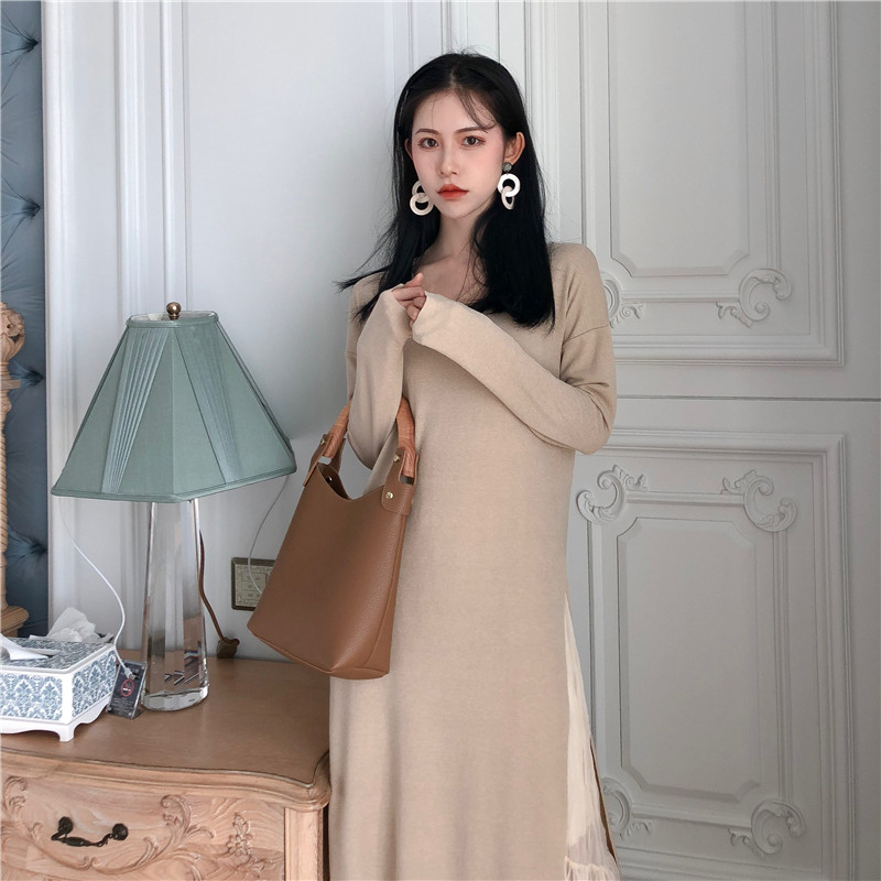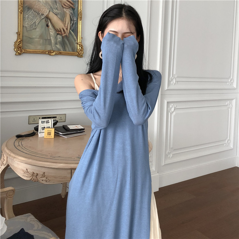 雪紡吊帶長款連衣裙外搭兩件套韓版氣質chic長袖T恤裙甜美套裝女