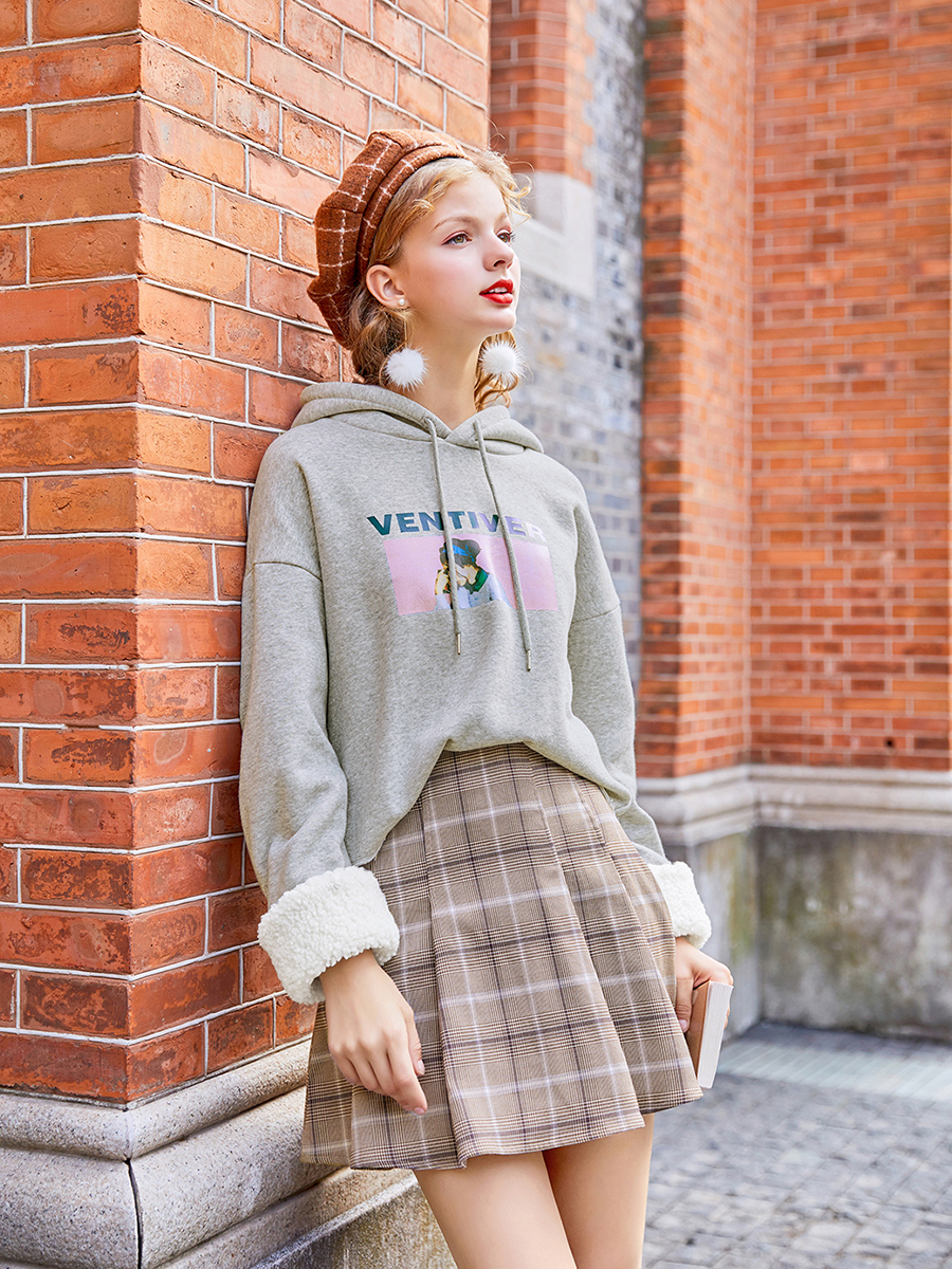 MG小象短款加絨衛衣女寬松長袖冬季2018新款學生保暖連帽套頭上衣