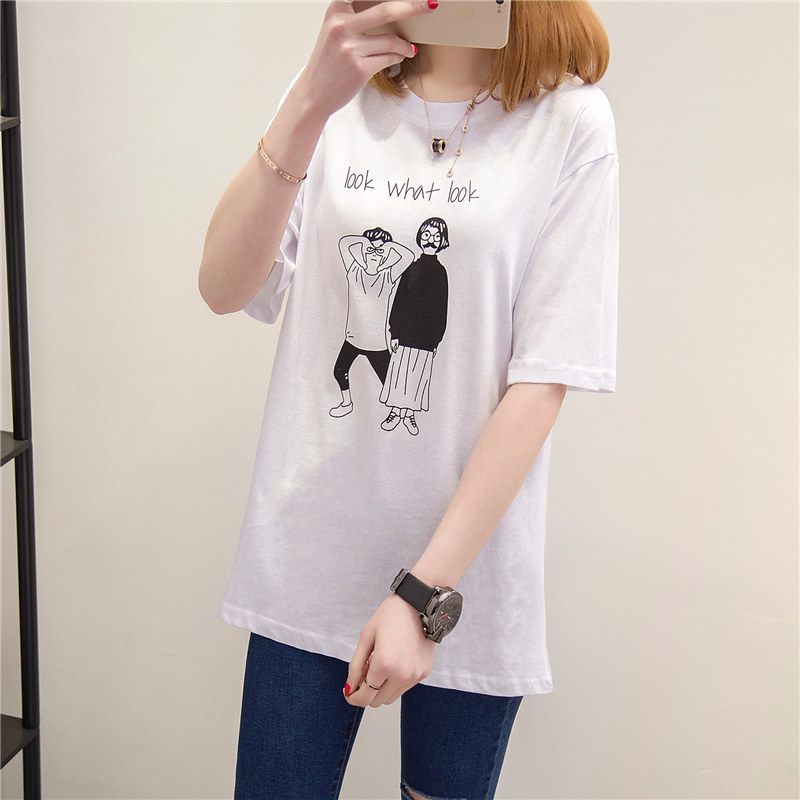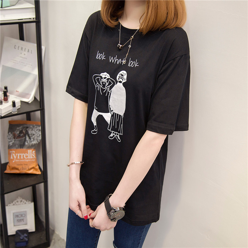 女裝春裝新款潮女體恤短袖卡通韓版寬松上衣純色打底衫t恤女