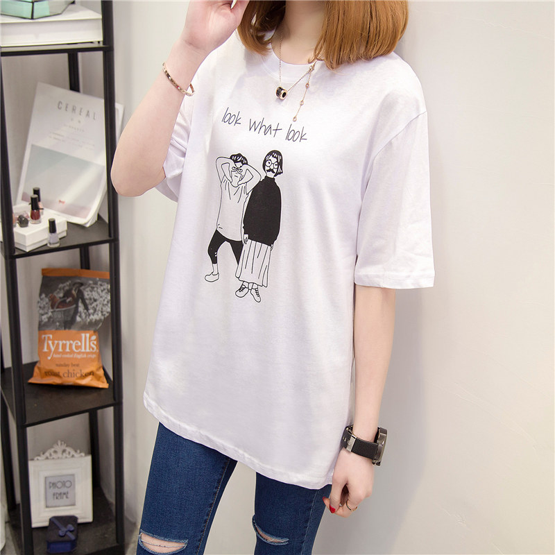 / 女裝春裝新款潮女體恤短袖卡通韓版寬松上衣純色打底衫t恤女