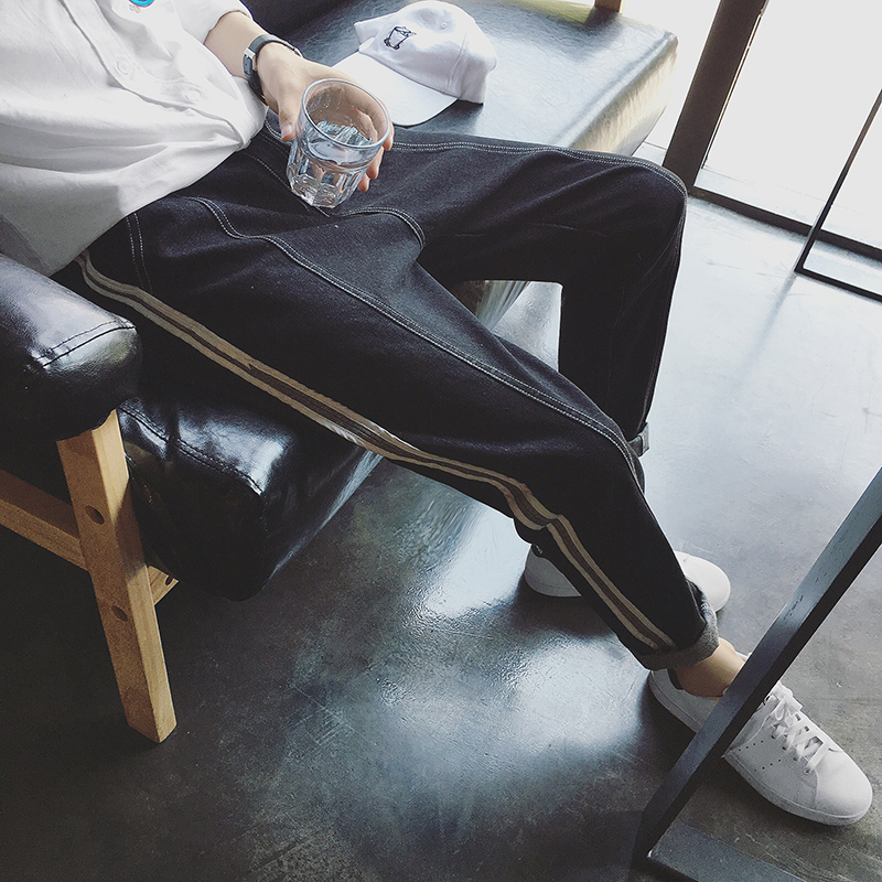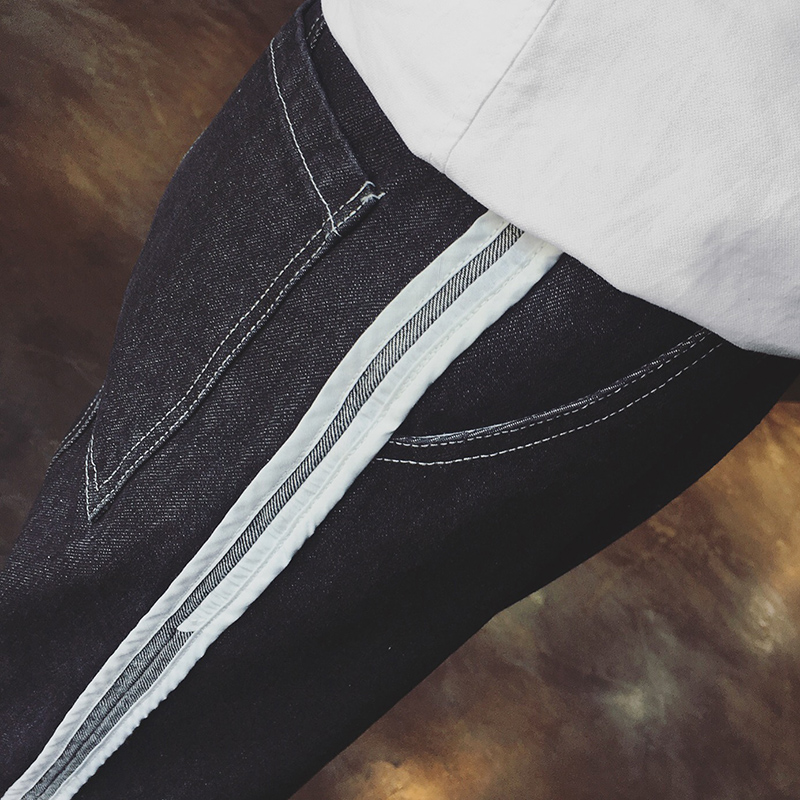 原創織帶設計潮男小直筒牛仔褲韓版港風寬松長褲秋