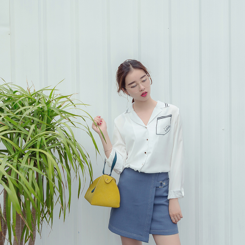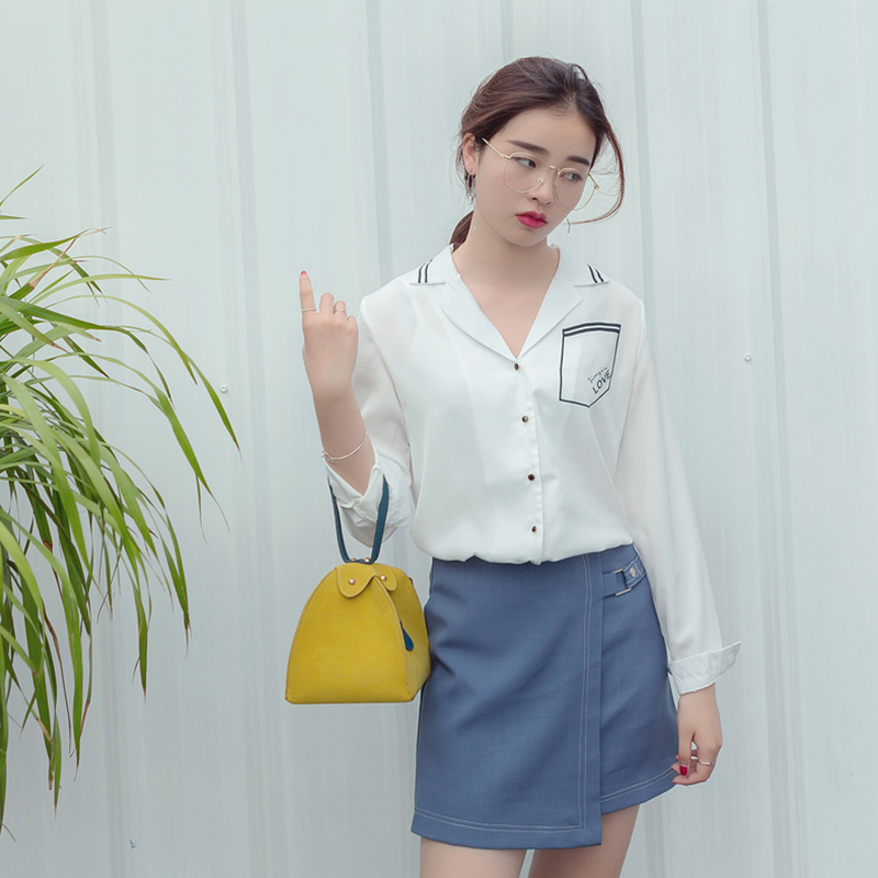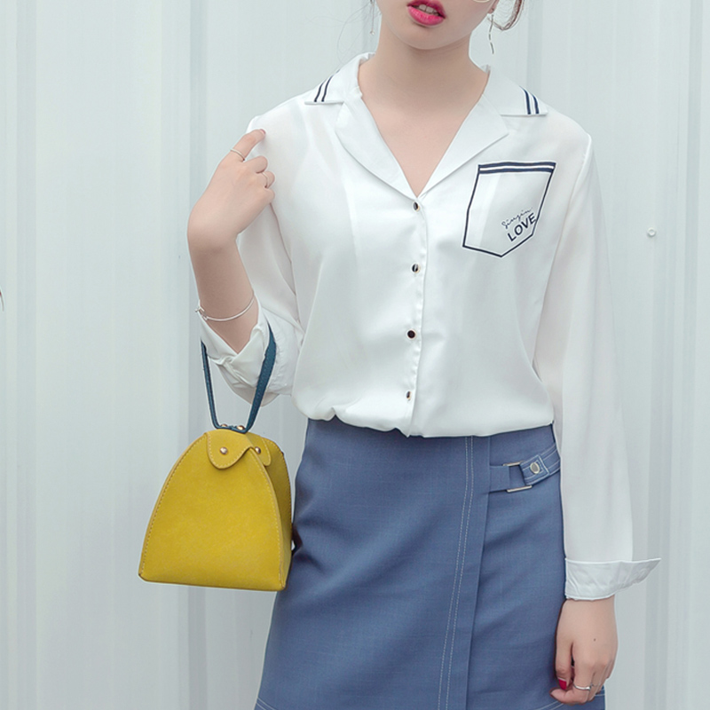 / 春裝新款時尚韓版女裝修身顯瘦V領上衣長袖百搭白襯衣襯衫潮