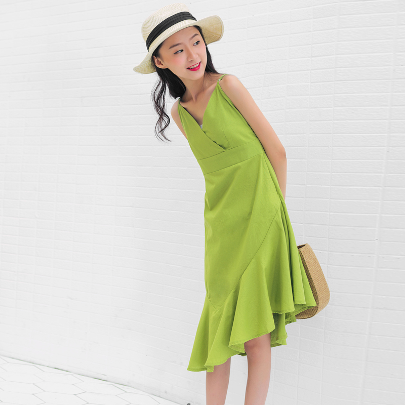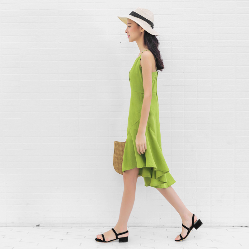 深V領結合細細的肩帶,又帶一份小女人的味道