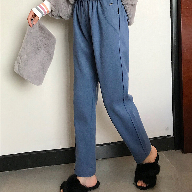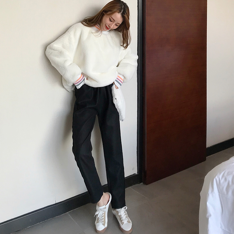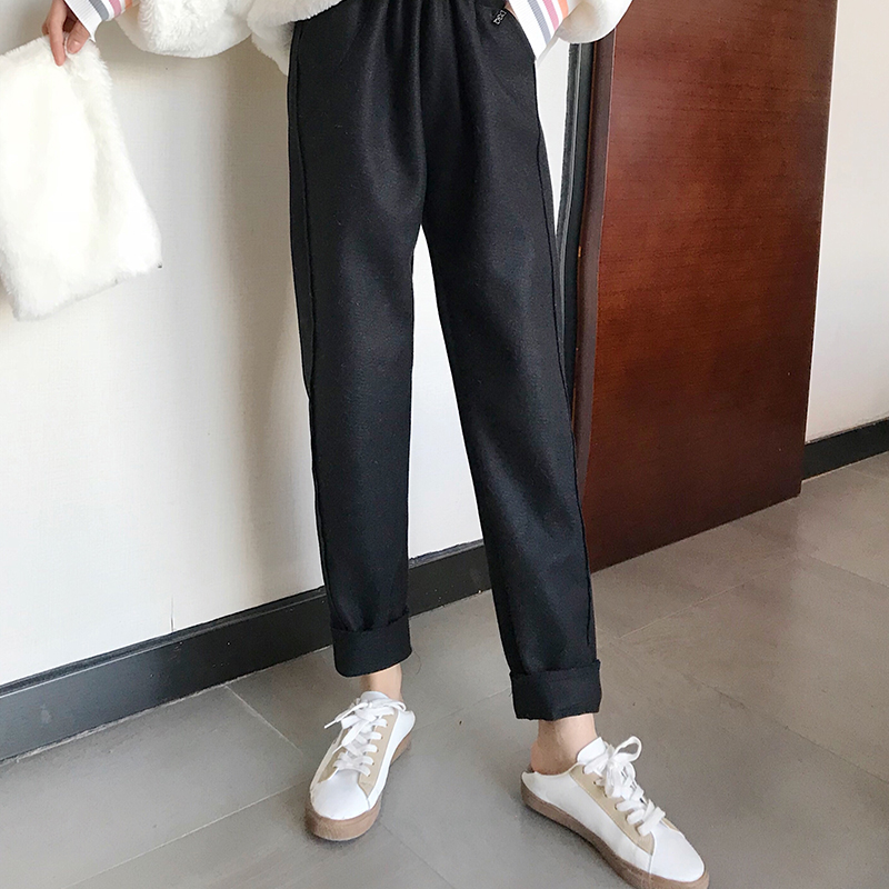 / 褲子女2018秋冬新款韓版百搭復古chic長褲直筒褲純色松緊腰休閑褲