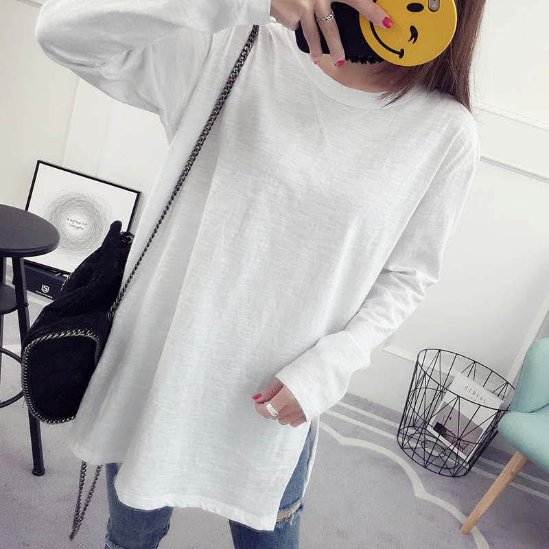 / 白色t恤女長袖寬松韓版圓領打底衫春季時尚新款簡約學生百搭