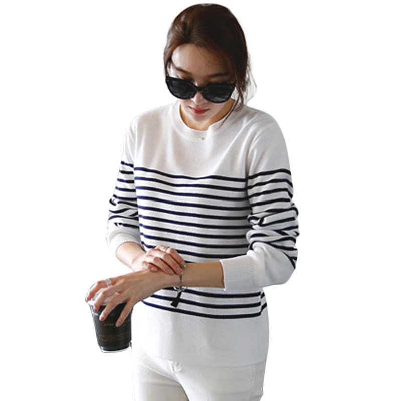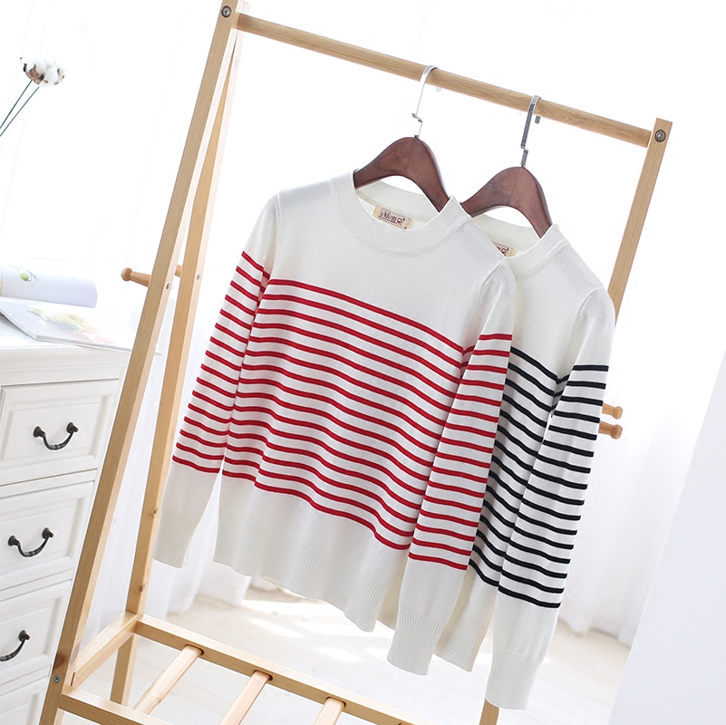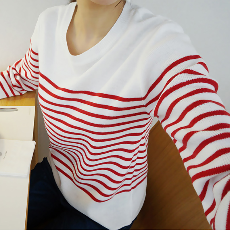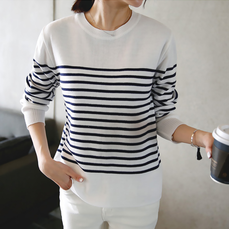 / 春季針織打底衫女長袖秋冬修身條紋針織衫女套頭短款打底毛衣