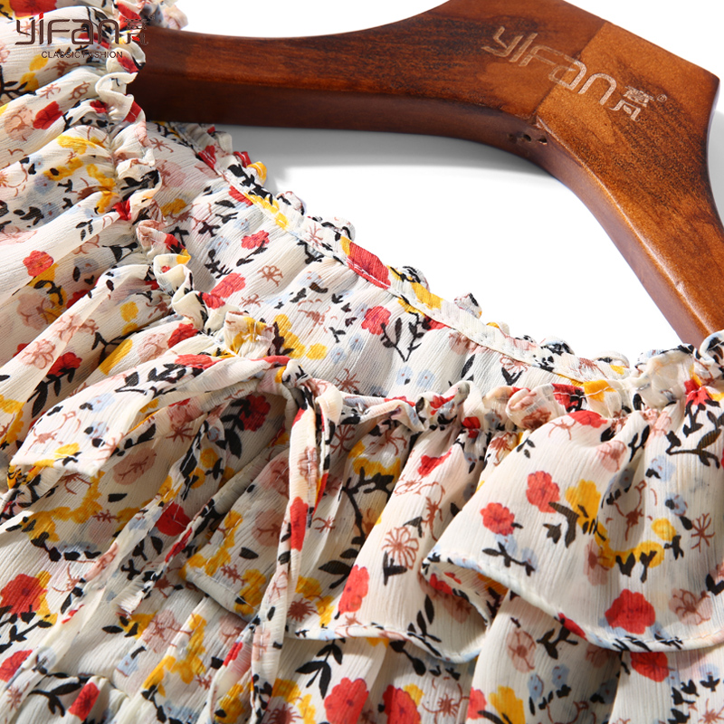 春夏韓版百搭氣質碎花系帶娃娃衫喇叭袖雪紡上衣女荷葉邊長袖