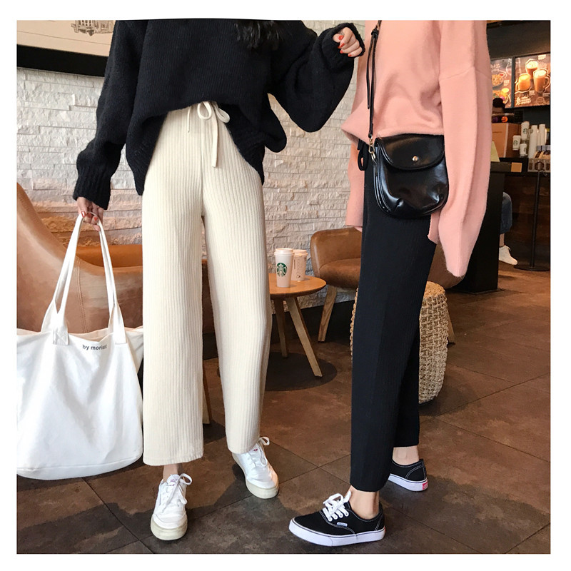 / 褲子女秋冬新款韓版時尚chic九分褲復古休閑寬松百搭直筒針織褲潮