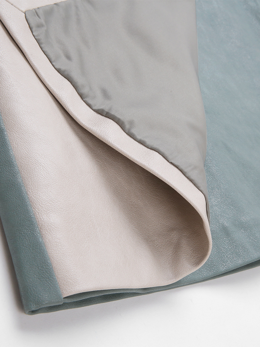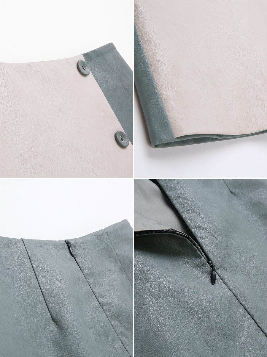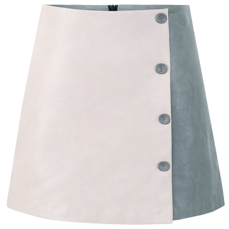 MG小象高腰半身裙女秋冬2018新款拼色皮裙學生修身顯瘦a字短裙潮