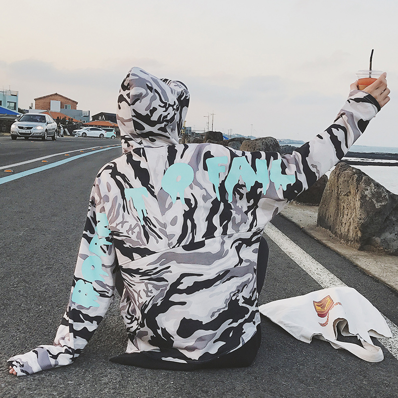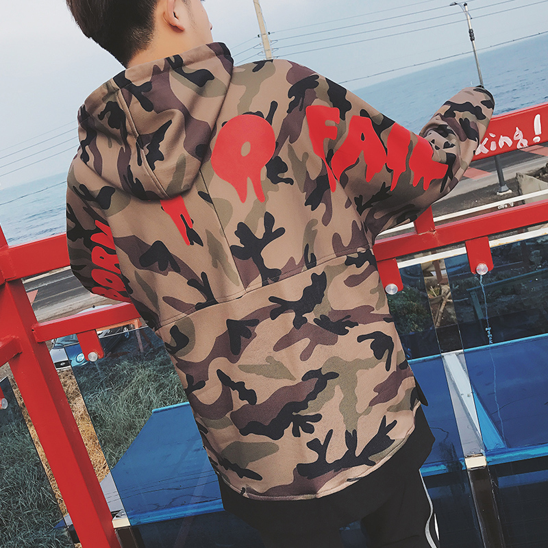 / 男裝繡花圖案韓版連帽迷彩印花男士套頭衛衣外套