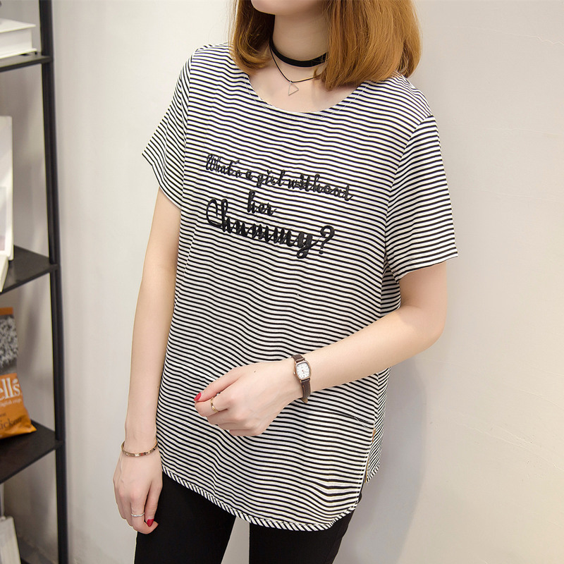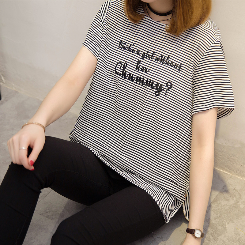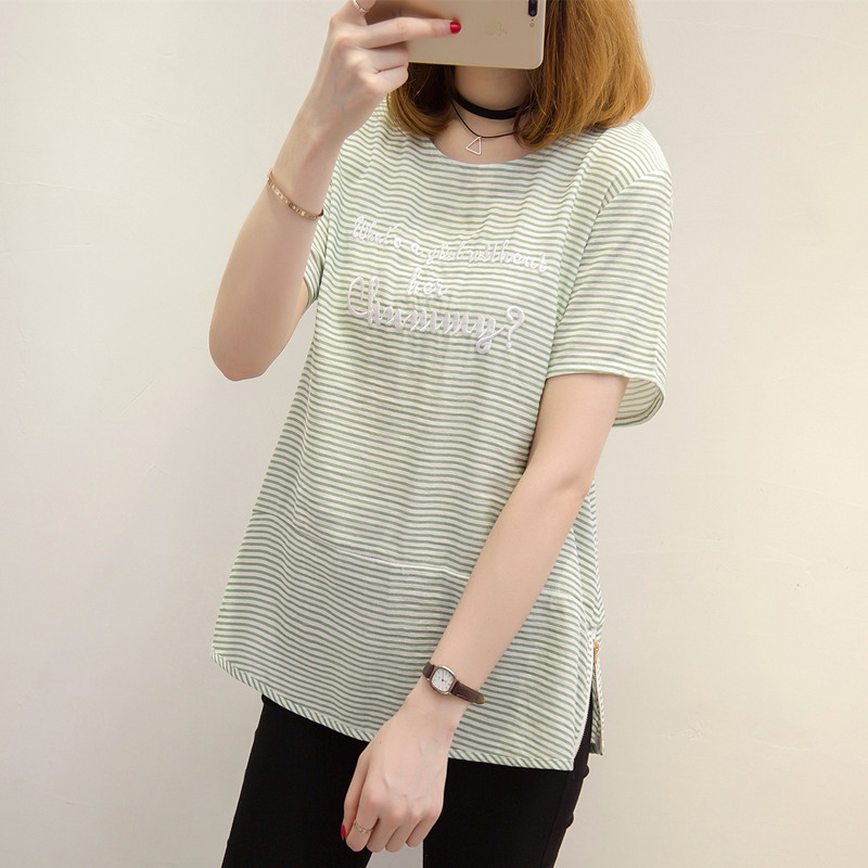 夏裝新款女裝條紋t恤女韓版學生短袖體恤衫小清新上衣女夏潮