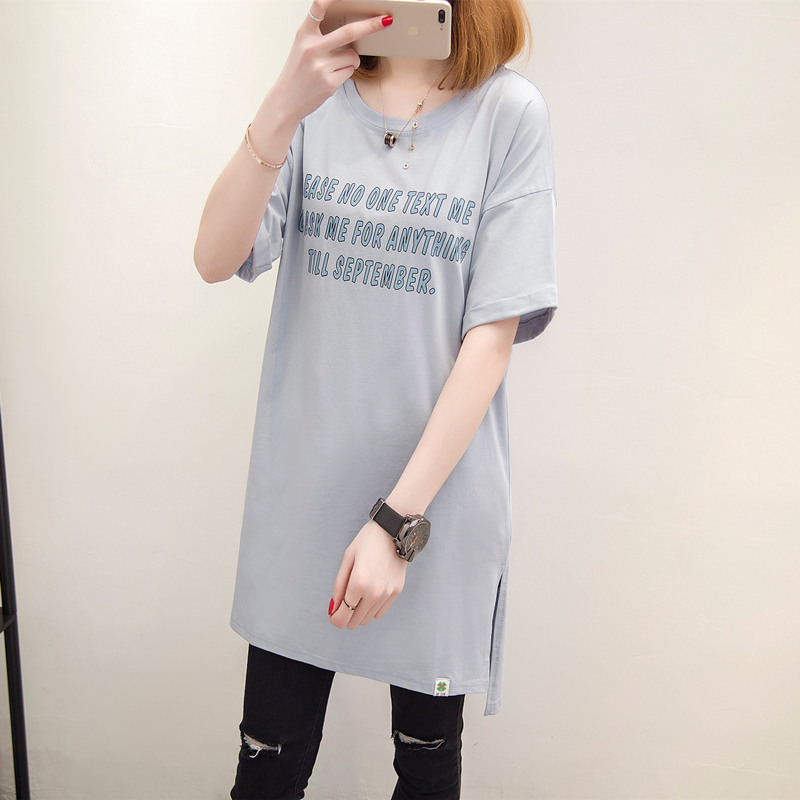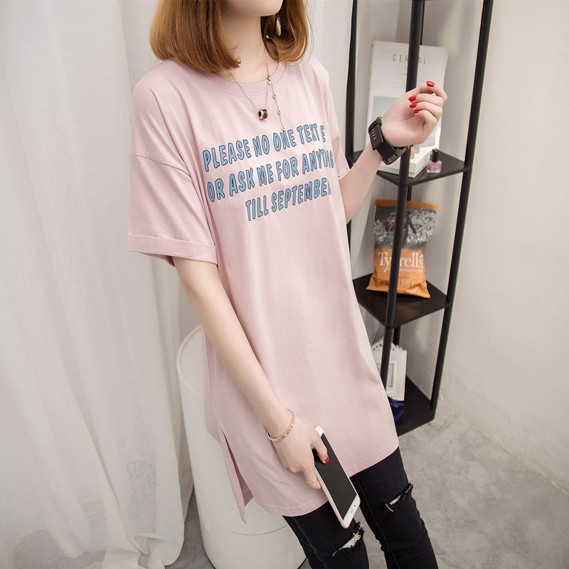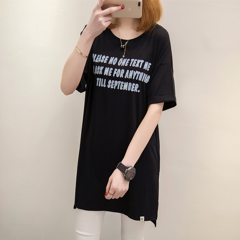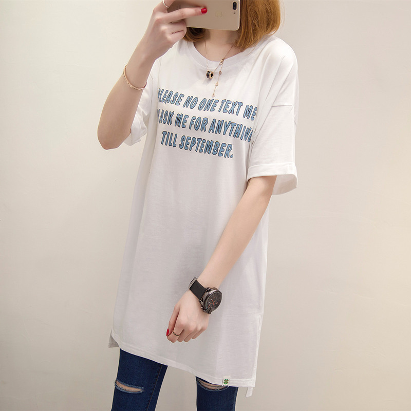 / 女裝春裝新款潮中長款打底體恤小衫字母寬松韓版短袖t恤女夏