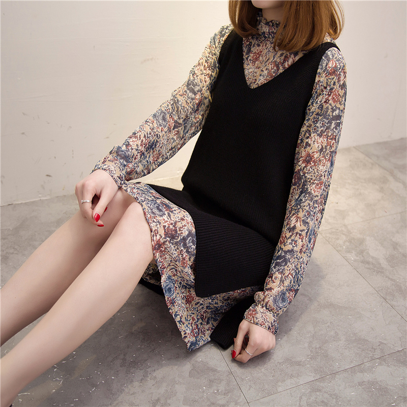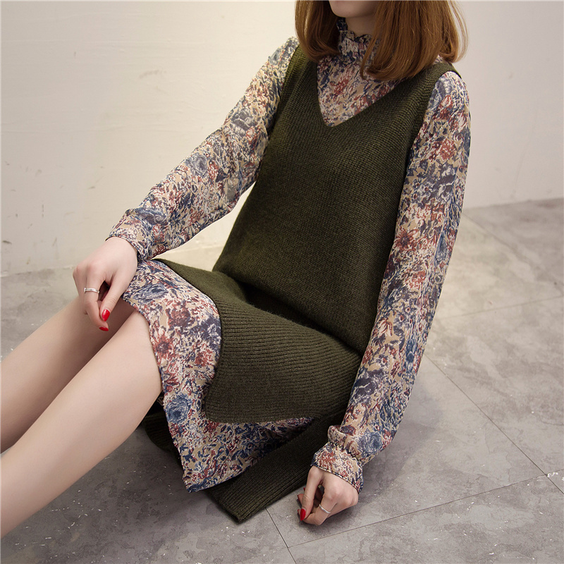 / 女裝背心裙吊帶背帶裙針織衫兩件套春秋中長款毛衣裙女寬松連衣裙