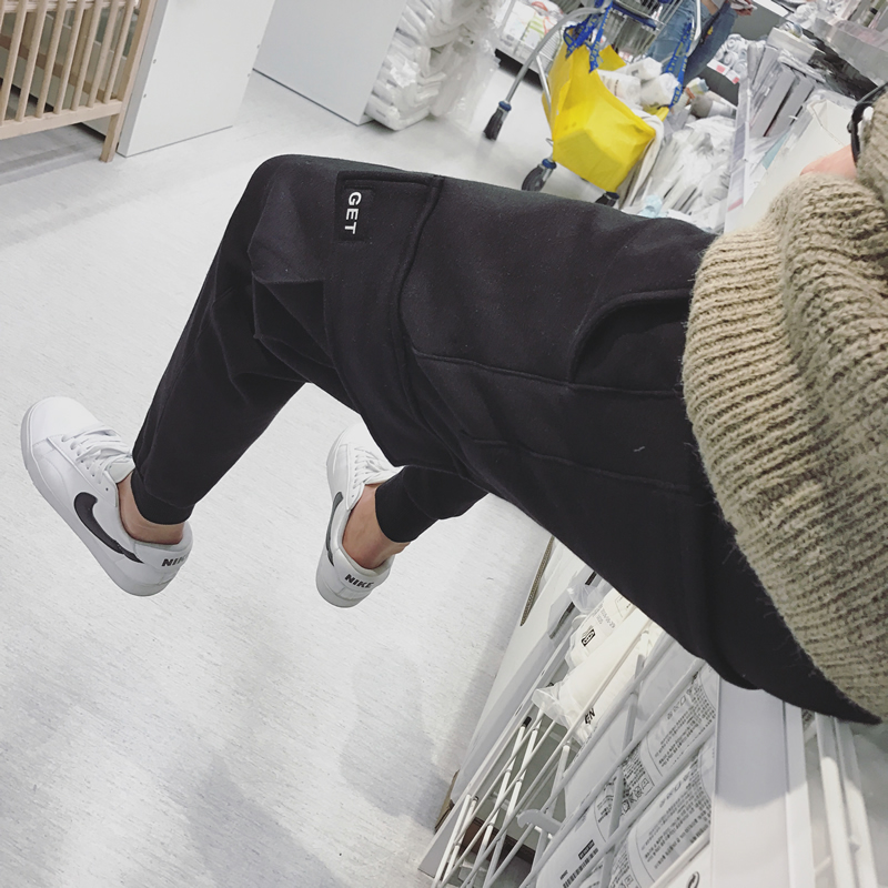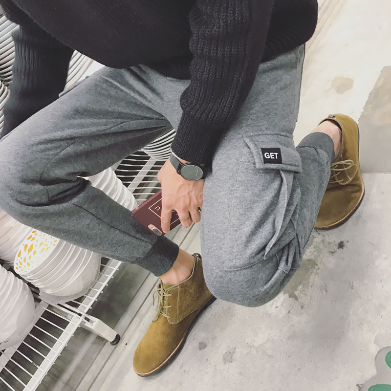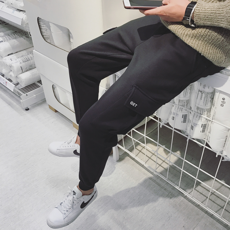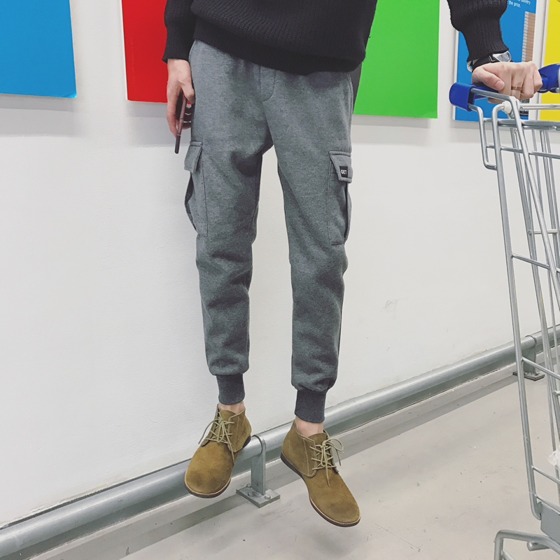 / 男裝港系加絨保暖工裝褲錐形褲修身小腳褲休閑褲男