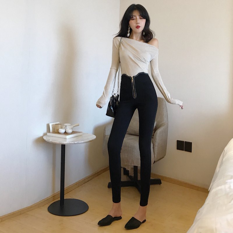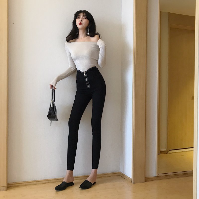 / 褲子2018秋裝新款顯腿長高腰拉鏈緊身小腳鉛筆褲靴褲打底長褲女潮