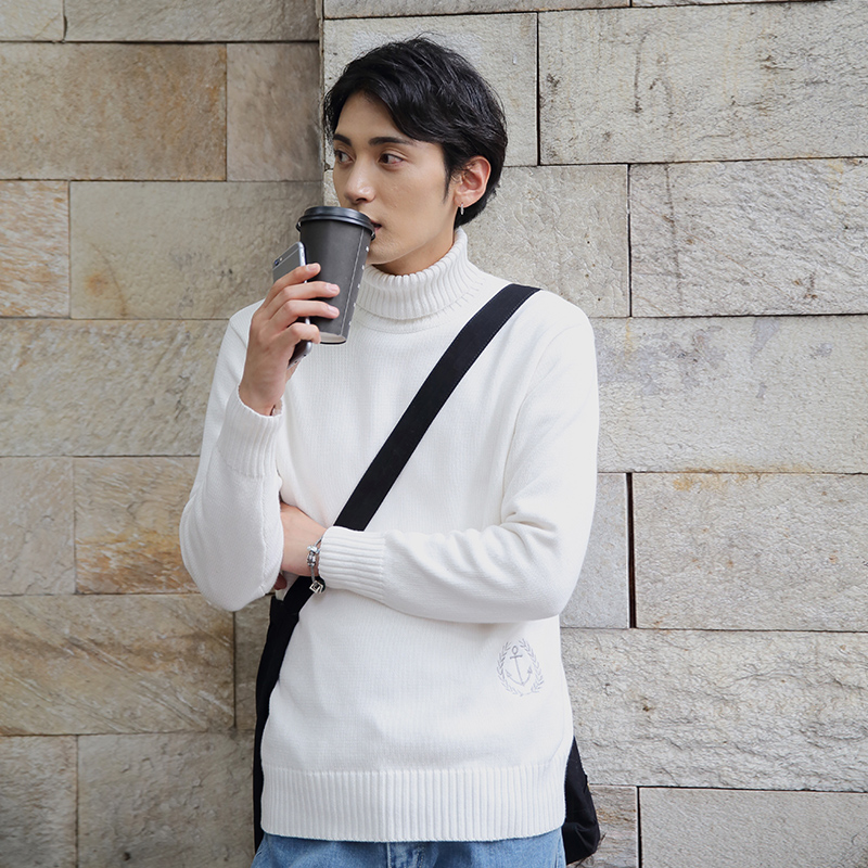 / 新款冬裝韓版刺繡麥穗高領小清新套頭針織衫毛衣男