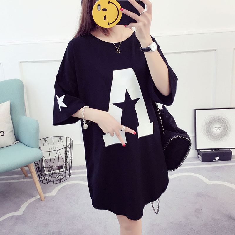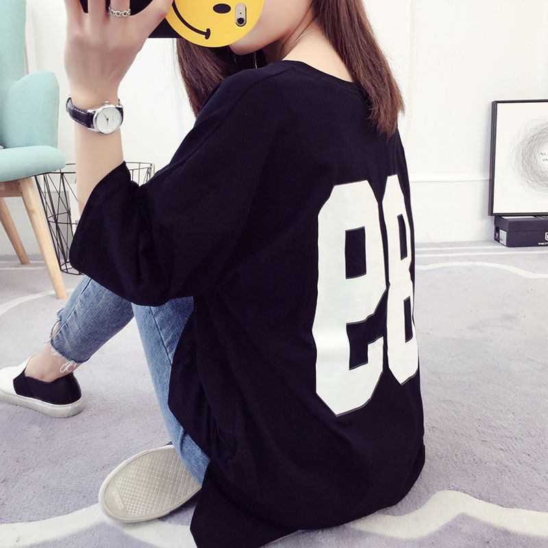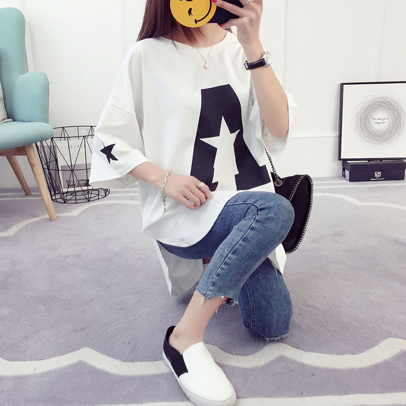 大碼七分袖女t恤學生韓版bf寬松中長袖半袖夏上衣百搭中長款秋衣