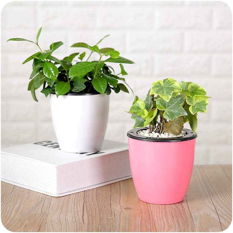 塑料花盆糖果彩色圓形水土2 用花卉盆栽免澆灌自動儲水兩件套花器