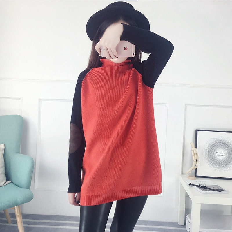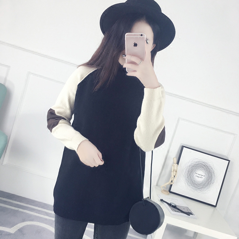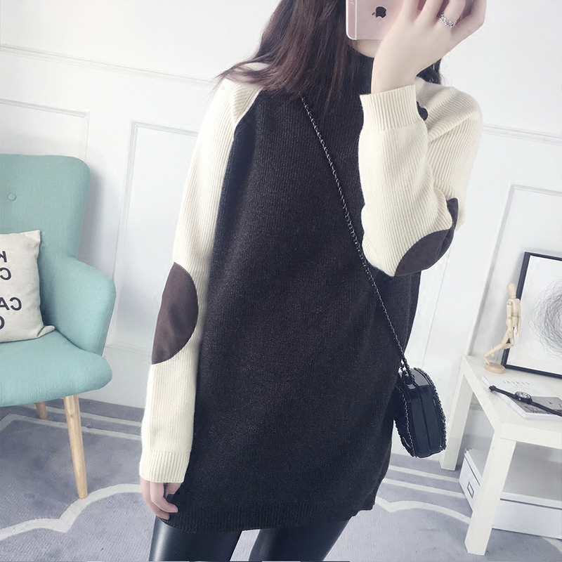/ 半高領套頭毛衣女秋冬中長款針織衫韓版寬松長袖打底衫女裝新款潮