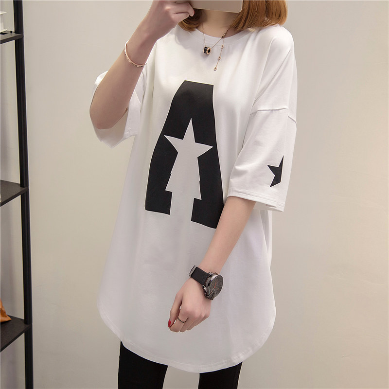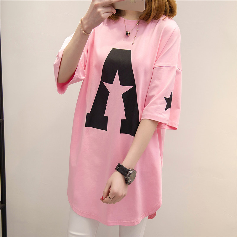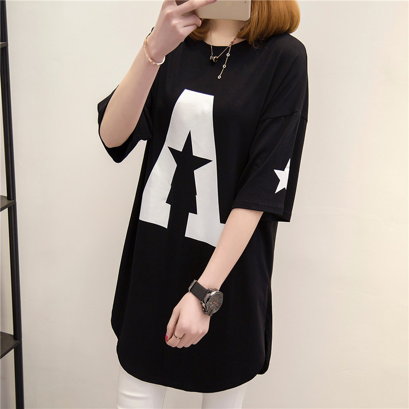/ 衣服女春裝新款潮中長款短袖t恤女寬松體恤夏裝韓版打底衫