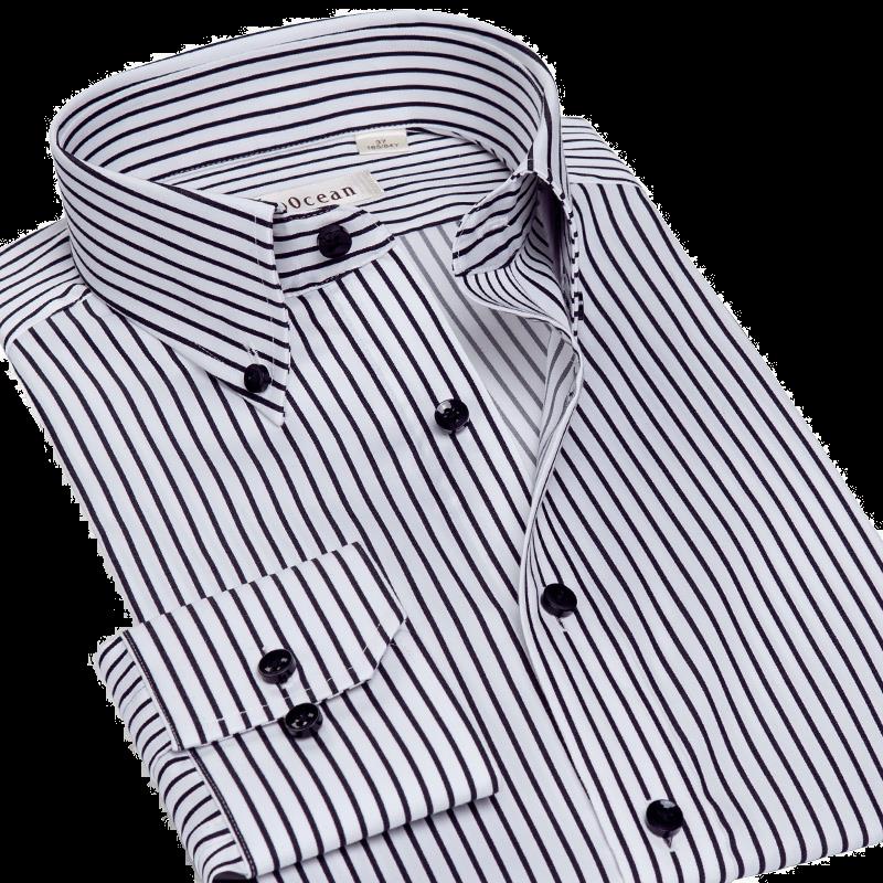 / 秋秋彈力棉免燙抗皺黑色條紋襯衫男長袖修身韓版潮流帥氣男士襯衣
