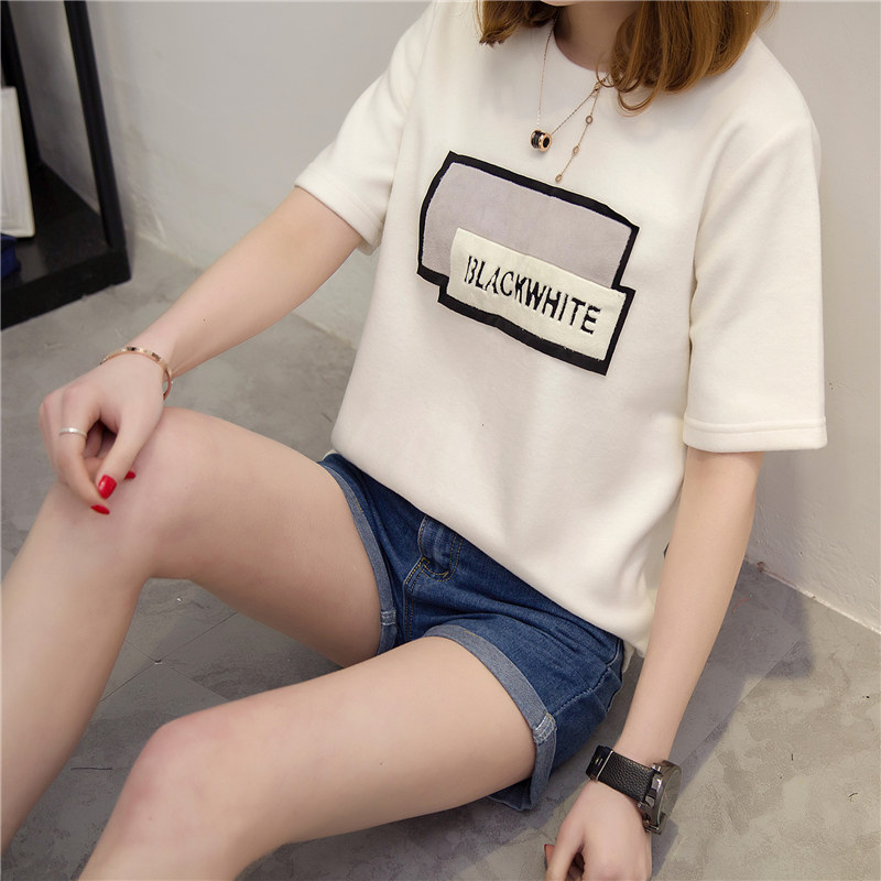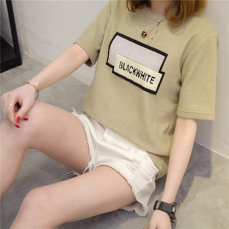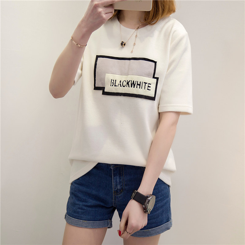 短袖上衣女夏新款潮女裝韓版寬松貼布百搭打底衫女春t恤小衫