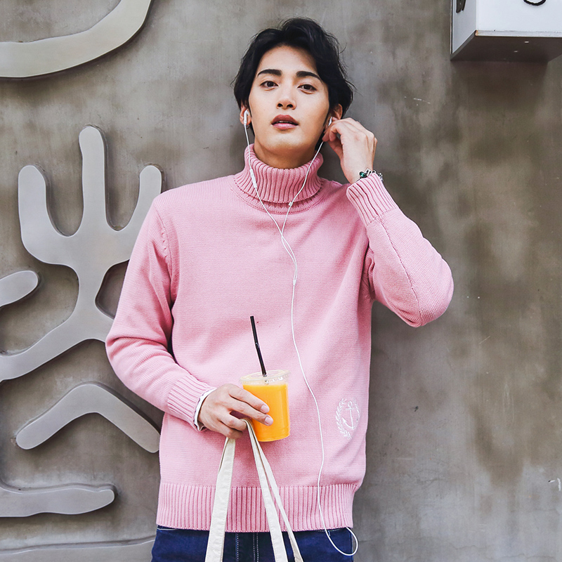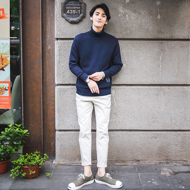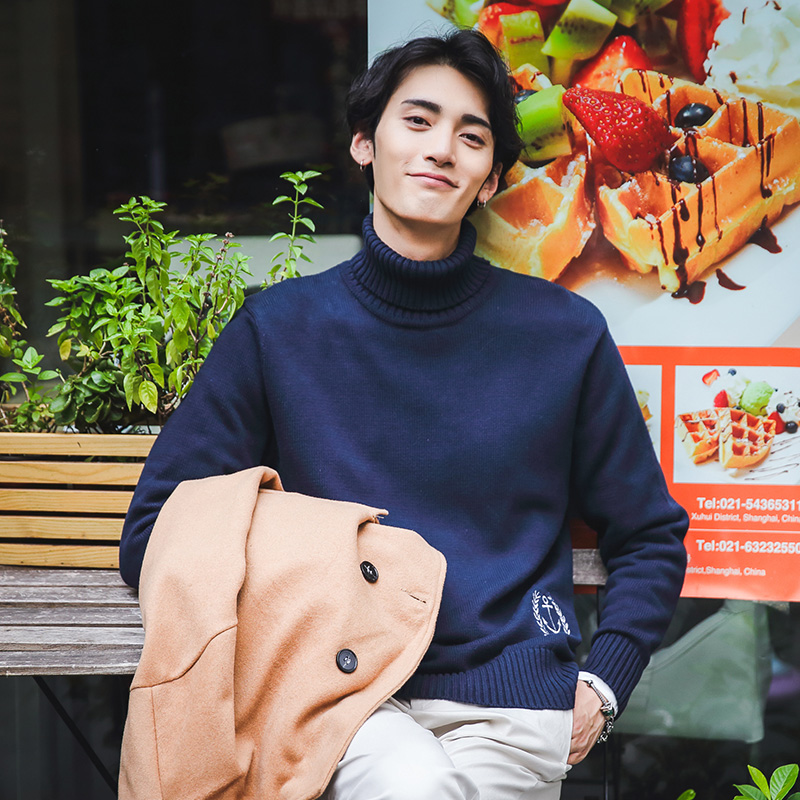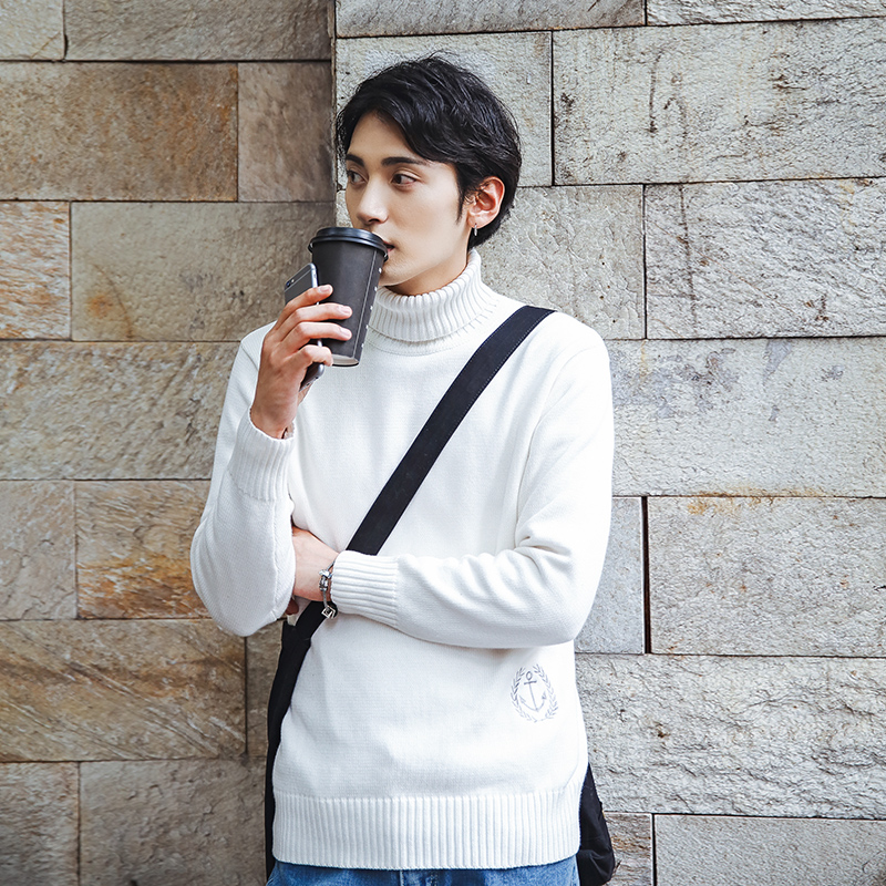 / 男裝下擺繡花高領毛衣韓版簡約氣質港風冬新針織衫