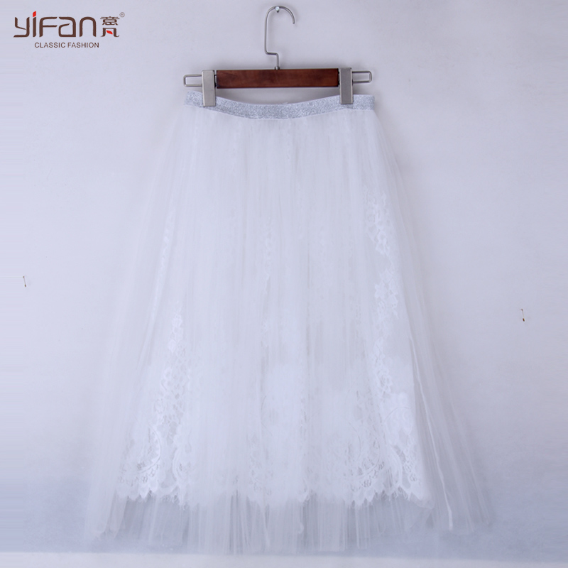 / 春夏新款半身裙透視蕾絲中長裙A字裙大碼長裙女