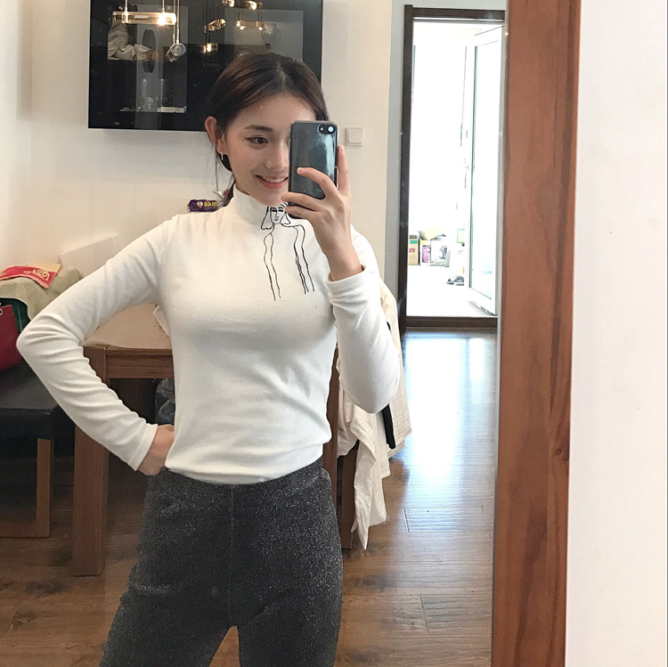 / 秋冬韓版半高領修身顯瘦女人印花純色長袖T恤打底衫女裝上衣