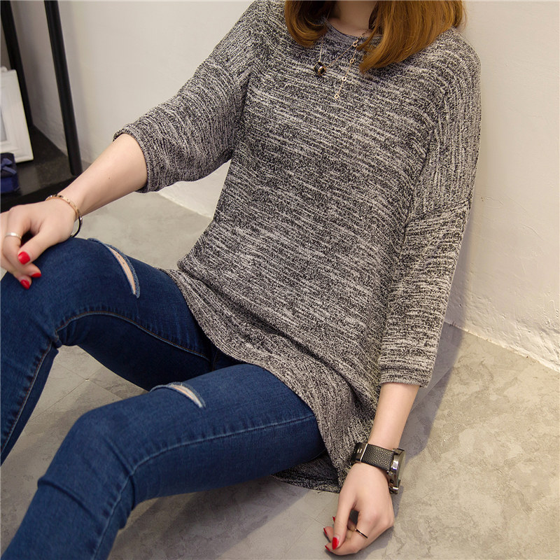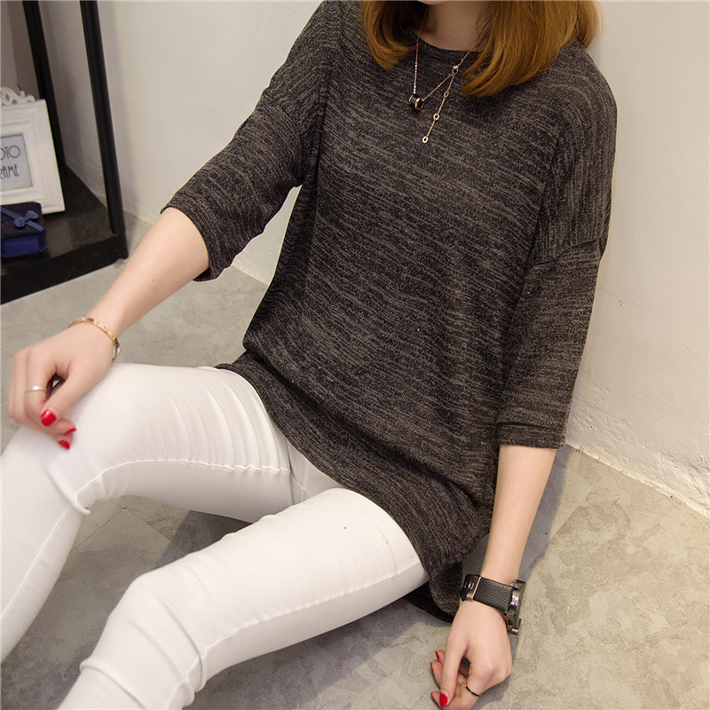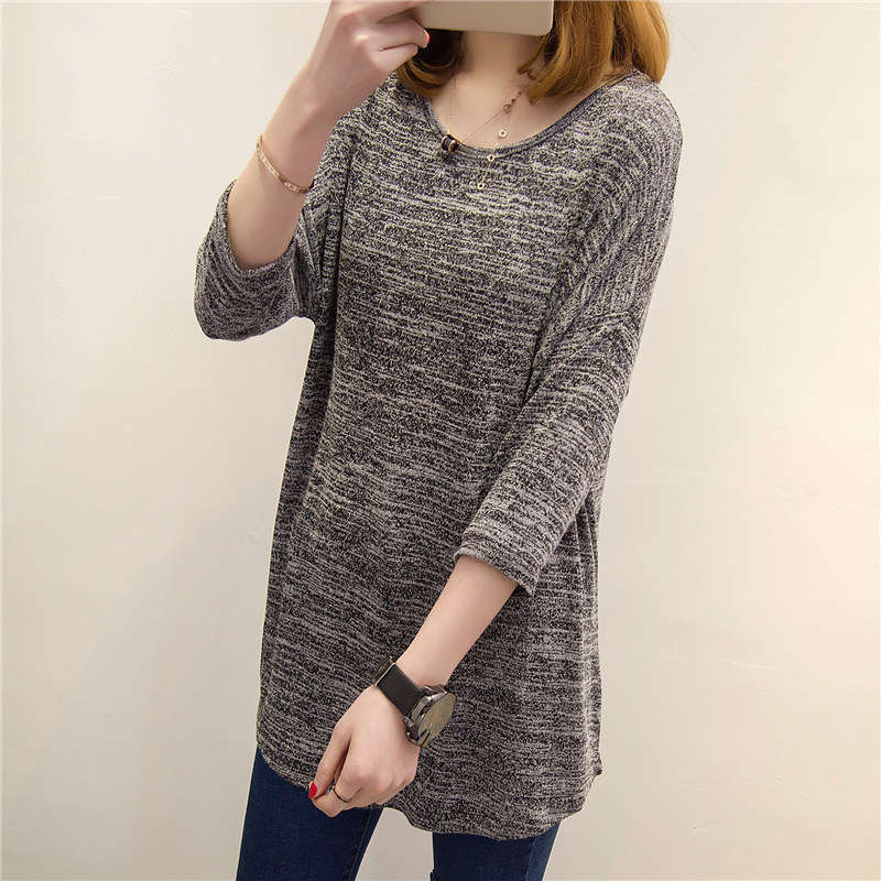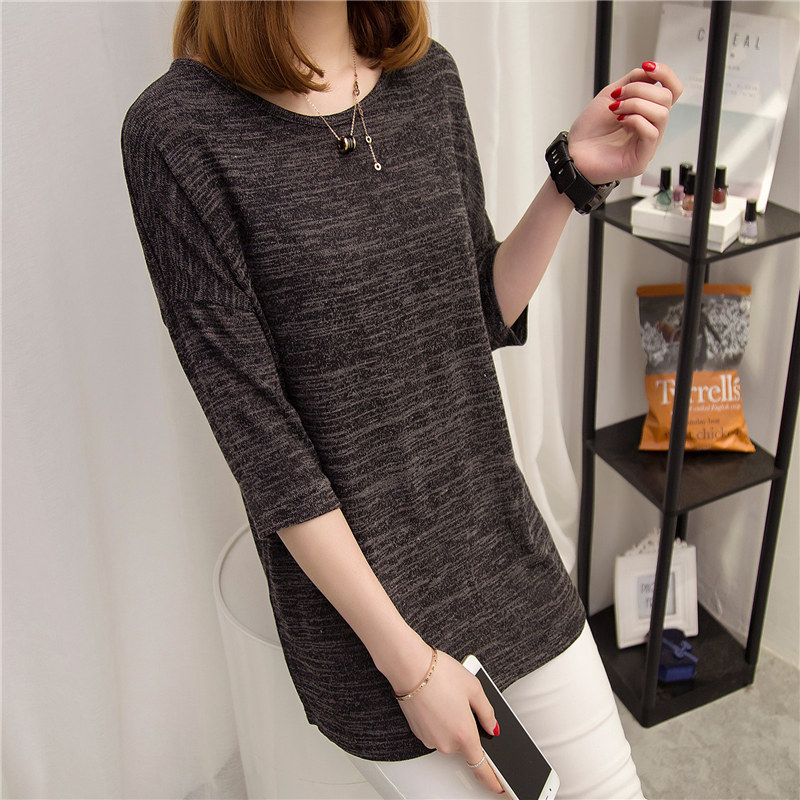新款春裝女上衣純色短袖t恤女中長袖寬松韓版衣服學生打底衫