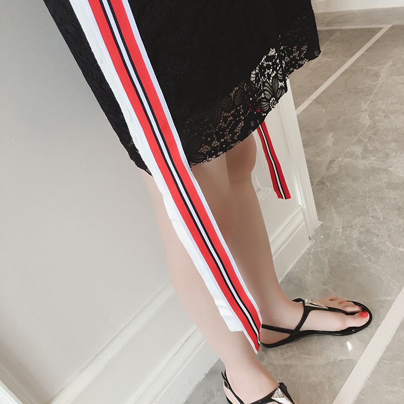 / 夏季新款女裝韓版時尚織帶裙子中長款顯瘦無袖蕾絲連衣裙女夏
