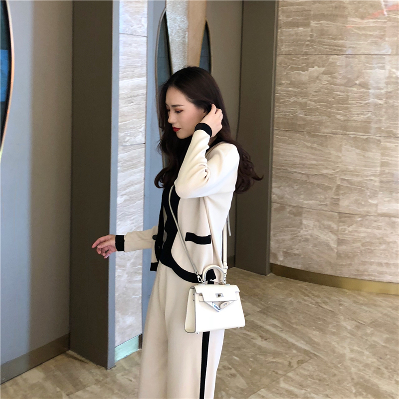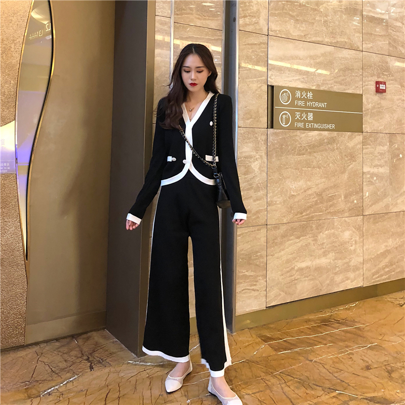 / 2018新款韓版時尚兩件套小香風雙排扣開衫外套長褲闊腿褲氣質套裝