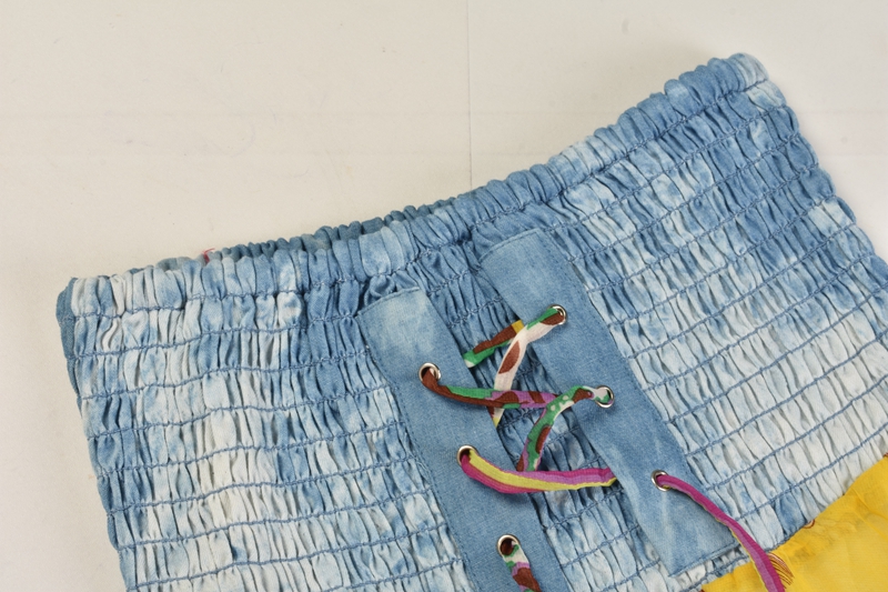 / 貨歐美風休閑百搭撞色印花系帶夏季新款甜美修身抹胸