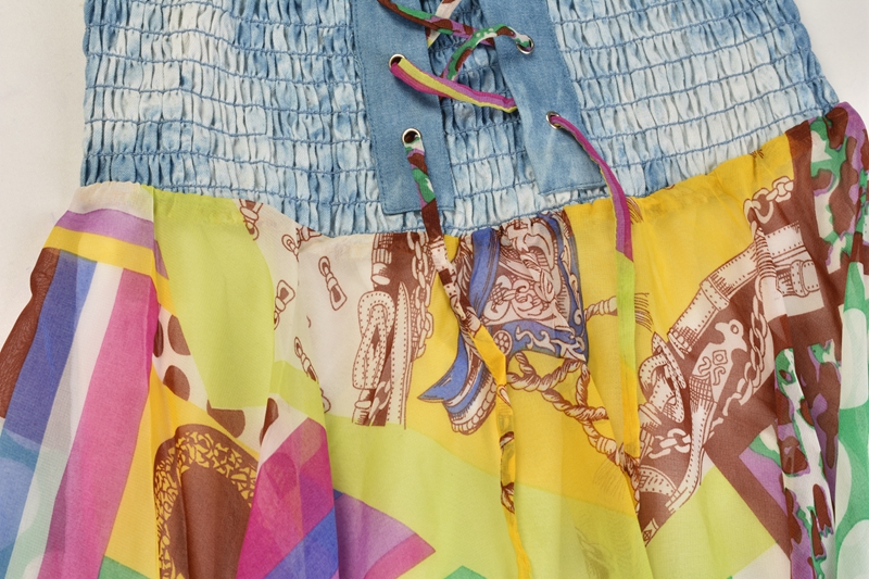 貨歐美風休閑百搭撞色印花系帶夏季新款甜美修身抹胸