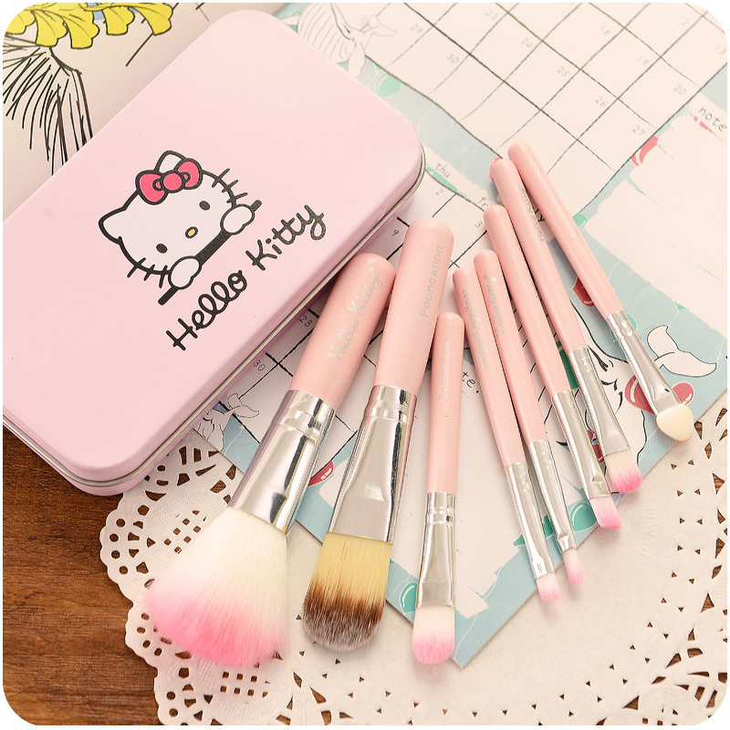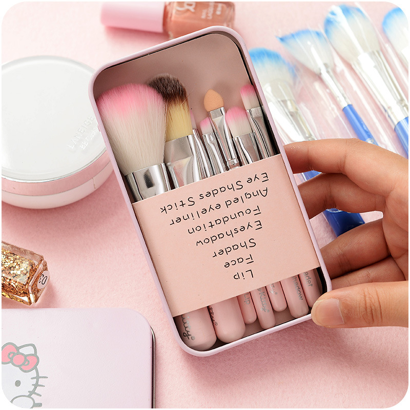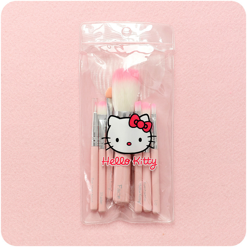 韓版可愛眼影化妝刷專業7件套裝 全套化妝刷收納帶卡通KT貓盒叮當