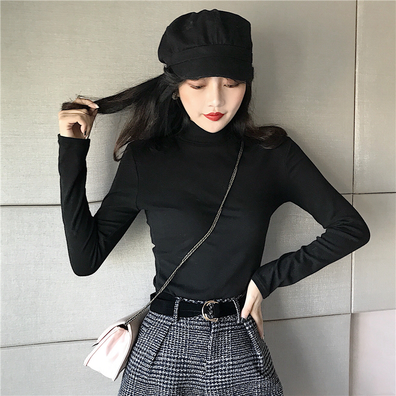 / 高領加絨打底衫女2018秋冬新款內搭上衣緊身純色百搭加厚保暖小衫