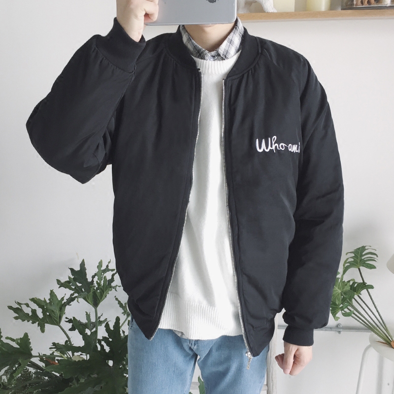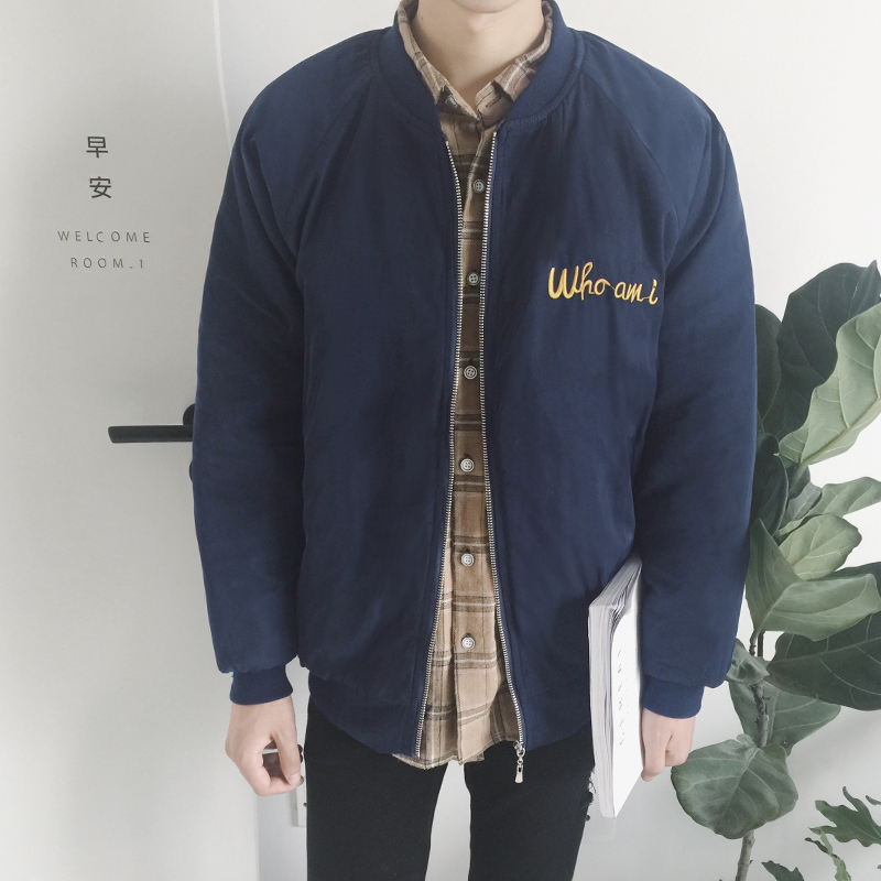 / 新款冬裝韓版字母貼布褶皺刺繡落肩款男士短棉衣