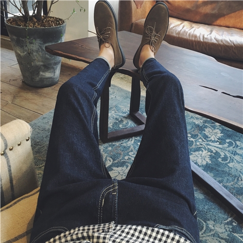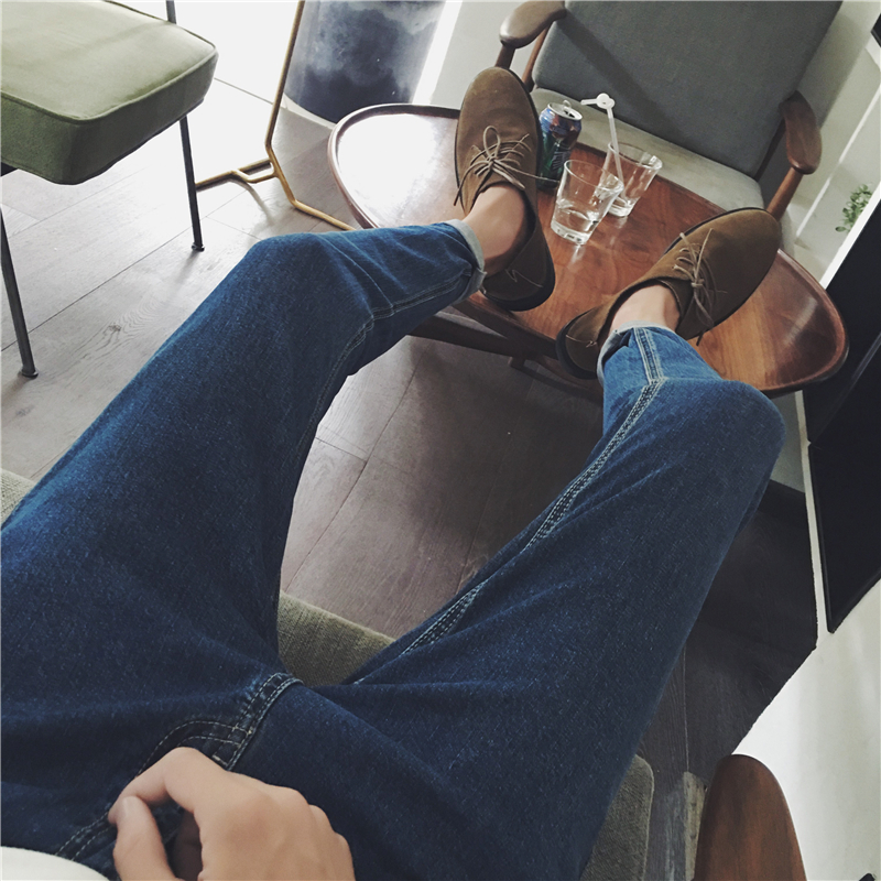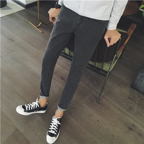 / 冬裝新款韓版純色百搭修身小腳加厚男士錐形牛仔褲