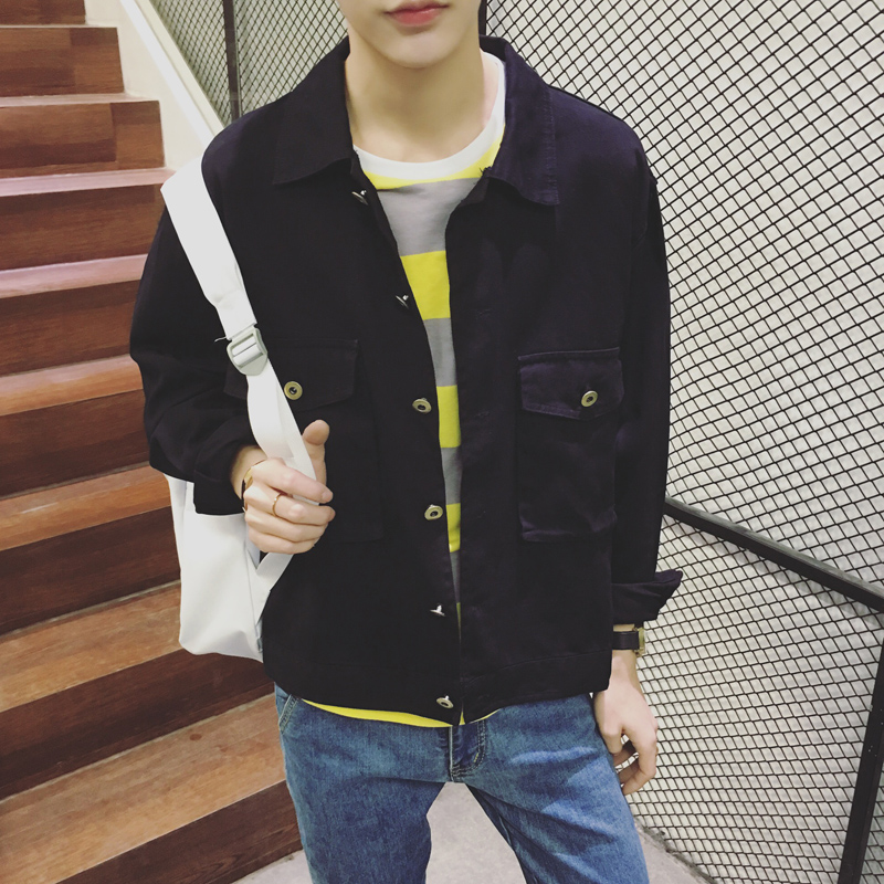 男裝新款韓版香蕉印花寬松版男士落肩純色夾克外套
