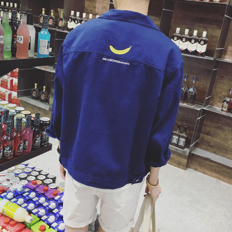 / 男裝新款韓版香蕉印花寬松版男士落肩純色夾克外套