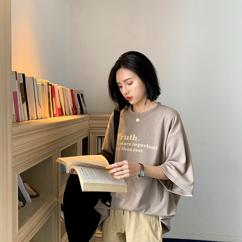 A7seven字母印花T恤女春夏白色短袖圓領寬松顯瘦韓版純棉簡約上衣