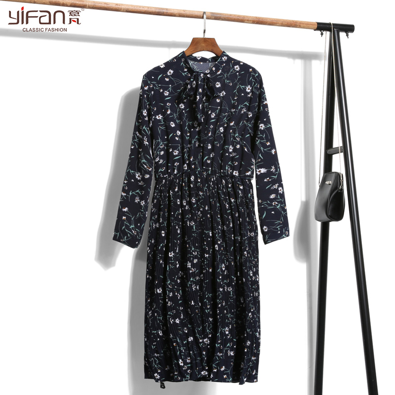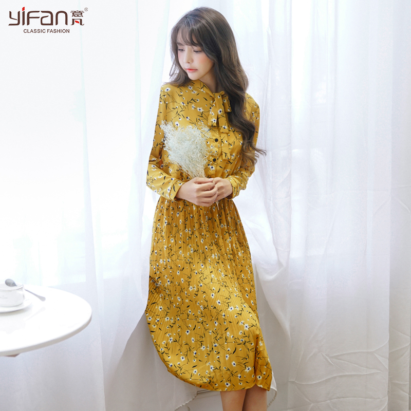 / 春夏雪紡碎花連衣裙女裝松緊腰中長款沙灘裙長袖打底裙新款