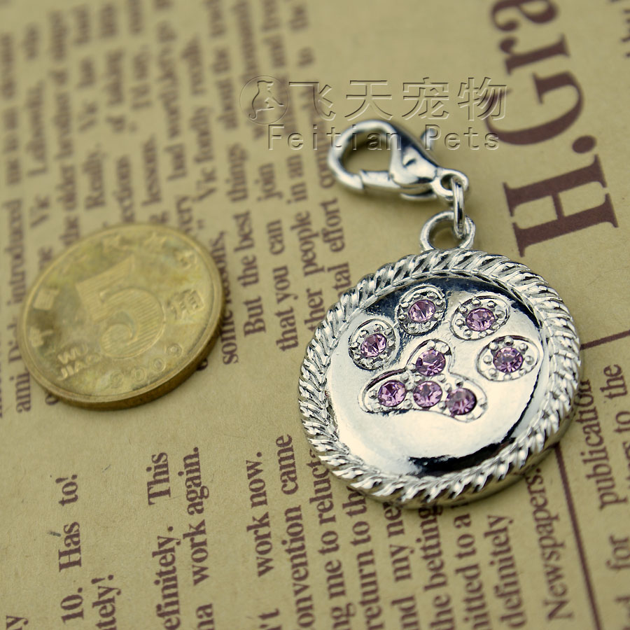 出口產品 ◆ 精致圓形彩鉆狗爪印吊墜 寵物飾品 狗牌 狗狗飾品